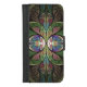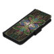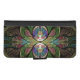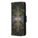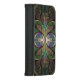 Wallet phone case with "Duchess of Sauchiehall" an abstract design copyright © 2013, Susan Wallace. Abstract stained glass floral Art Nouveau style hourglass in shades of green, bright rosy pink and purple with chocolate brown and blue highlights.
