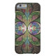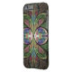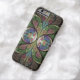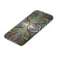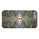 iPhone 6/6S case design from "Duchess of Sauchiehall," an Apophysis fractal by Susan Wallace. Copyright © 2013, Susan Wallace. Abstract stained glass floral Art Nouveau style hourglass in shades of green, bright rosy pink and purple with chocolate brown and blue highlights.