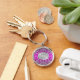 Duchess Pink Damask Silver Plaque Pet Tag Keychain