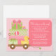 This cute Baby Shower invitation features pink and green baby gifts and a rubber ducky in a wagon. This modern and fun baby shower invitation is perfect for any mom to be.