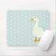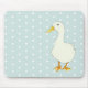 A sweet white duck asking standing acting cool, set against a blue background with white dots. Wonderful gift for duck lovers or anyone who loves birds, animals or nature. Matching cards, sticker, magnet, mug, apron, t-shirt, poster.