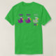 My 11 yo wore adult XL (5’7” 165#). The 8yo is small framed. She wore adult small and tied it in the back. Grandma wore adult large with long sleeve shirt underneath. Tall girl adult medium. Dark haired male adult large. Good quality dark Heather gray, Gildan brand shirt. -it was next up from basic choice and cost about $20 per shirt. Not too thick or thin. Washed and dried well, no major shrinkage. Not see-through. Can wear a bra under it fine. Screen print is just as shown and well done, front and back.
