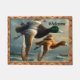 Featuring a breath taking view of two ducks flying over the ocean With a small boat below. And a island.This floor mat has a wood floor frame .The text and text color can be change to any color you want it to be with the custom tag.