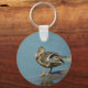 A keychain shows a mallard staying on a lake's shore