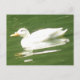 This lovely postcard features a photograph of a gorgeous white Aylesbury duck swimming across a duck pond in a park. You can see the ripples on the water and the reflection of the duck.