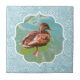 This tile features a delightful photograph of a cute duck gracefully swimming on crystal-clear water, with a swirly teal pattern background. Whether displayed as a standalone piece or incorporated into a mosaic, this tile is sure to enhance the beauty of any space!