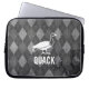 Appealing to the more eccentric individual, this sleeve features a black and gray grungy argyle print, with a white pictogram of a duck. The customizable white text features the word "QUACK." An enigmatic and inexplicable item!