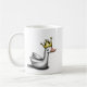 Start your day like royalty with this charming ceramic coffee mug. The design showcases a beautifully illustrated white duck, distinguished by the elegant golden crown it wears upon its head. With its eyes peacefully closed, the duck exudes a sense of calm and quiet confidence. This mug is perfect for anyone who loves unique animal art, fantasy themes, or simply wants a cute and quirky addition to their kitchen. It's a great gift for friends, family, or the "king" or "queen" of your life.