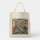 The printing came out very well, better than I had anticipated. The natural color fabric is sturdy with strong seams and comfortable handles. This tote fits easily over my shoulder. As it is filled, the bottom flattens out--very cool! I would buy this product again. This grocery tote holds a lot of groceries! The image quality was very good. The colors were a little darker than I had expected. The darkness may have been due to printing on a natural color fabric rather than on white. The cat design is attractively centered on the tote. The spirit of the design is very lively, just as it appears on the Zazzle website.