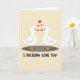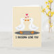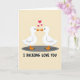 This Valentine’s Day card shows two sweet white ducks standing close together on a soft gray shape, leaning toward each other as if about to share a kiss. They have bright orange beaks, gentle expressions, and small pink hearts floating above their heads to show affection. The background is a warm beige tone that helps the ducks and hearts stand out clearly. Beneath the illustration, bold black lettering reads “I DUCKING LOVE YOU,” adding humor to the romantic message. The illustration uses simple shapes, soft shading, and balanced spacing, making the card easy to read and visually charming. It’s a lighthearted way to share love and laughter with someone special ❤️