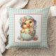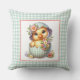 Duckling in Easter Egg & Flowers on Blue Gingham Throw Pillow