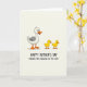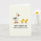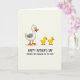 This card shows a sweet scene of a white-feathered water bird on the left, leaning its gentle gaze toward two small yellow chicks on the right, as if guiding them with quiet care ❤️. The larger bird has a soft gray patch on its wing, with an orange beak and matching webbed feet that echo the chicks’ tiny orange beaks and feet. The two fluffy youngsters stand close together, looking back up at the adult with an affectionate, trusting expression that suggests a close bond. A pale cream background keeps the focus on the trio and gives the space a light, airy feel. Centered beneath the birds, the message appears in dark, heavy lettering that reads “HAPPY MOTHER’S DAY THANKS FOR SHOWING US THE WAY.” The text sits in two lines below the figures, with the words filling the lower portion without touching the characters, and a small touch of warmth comes through like a shared family moment 🌼. Subtle shading under the birds adds a slight grounded look against the plain background. The adult bird’s gray wing patch and bright orange beak stand out clearly against the soft, creamy backdrop.