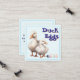 Small, square calling cards with ducks to advertise fresh eggs or other farm goods. The sample wording is "Duck Eggs" on the front. Add more text to the back. Light blue cards with two, white ducks on the front beside four eggs.