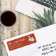 Farm ducks return address labels. Two white ducks decorate rust orange color labels with white text. The first line is script for names or family name. The address space will hold three lines, as needed.