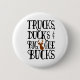 A button that says trucks ducks and big ole bucks for your bags. Show your hunting pride.