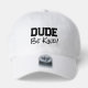 White and black stylish kindness hat with fun text. Great for any age. Boy or girl. Share kindness in a creative way with this Dude, Be Kind popular cap. Teenagers love this one!