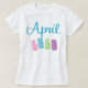 Announce your baby's due date with this fun Due In April maternity design. Fun pregnancy slogan with April Baby design in pretty colors on a ringer t shirt.