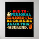 Due To Reasons I'll Be Drinking Again Funny Quote Poster