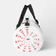 Red stars spiral from small in center to large in outer rim. Optical illusion of looking down a long distance. Personalize with your initials (show on front and one end, in center of star pattern.