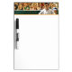 The board is very high quality and heavy! We wanted to put it on our fridge, but there was no way to attach it with magnets. We tried bag clips with magnets, but the board was still heavy after using 4. We purchased a roll of magnetic tape. Adhesive on one side, magnet on the other. Works great. Other problem is that it comes with a black dry erase marker. Why not an option to choose a white one? Had to purchase a chalk dry erase marker from Amazon, but after all that, board works great! Wife loves it. Printing is beautiful. We went with stock except changing to our last name. Looks great!