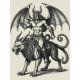 Astaroth, the Great Duke of Hell, is rendered as a haunting union of intellect and instinct. Crowned and composed above, yet fused to a crouched, beastly form below, the figure embodies sloth, temptation, and duality in a dark, allegorical engraving.