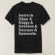 My 11 yo wore adult XL (5’7” 165#). The 8yo is small framed. She wore adult small and tied it in the back. Grandma wore adult large with long sleeve shirt underneath. Tall girl adult medium. Dark haired male adult large. Good quality dark Heather gray, Gildan brand shirt. -it was next up from basic choice and cost about $20 per shirt. Not too thick or thin. Washed and dried well, no major shrinkage. Not see-through. Can wear a bra under it fine. Screen print is just as shown and well done, front and back.
