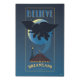 Dumbo flies across the moon on a starlit night, high over the circus tents in this Dreamland attraction poster art.