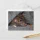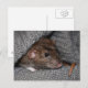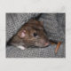 Reggie the Brown and White Dumbo Rat peeking out from a jumper - A cute postcard for rat lovers!