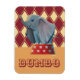 This cute painting of Dumbo is smiling and standing atop a red and white star circus podium, ready to perform.