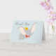Express heartfelt gratitude with this enchanting thank you card featuring a beautifully illustrated watercolor scene of Dumbo soaring through the sky. With his signature oversized ears and joyful expression, Dumbo brings a whimsical charm to this heartfelt note of appreciation. Soft pastel hues and delicate brushstrokes create a dreamy atmosphere, making this card perfect for thanking guests after a baby shower or special celebration. A timeless keepsake, this design captures the magic of childhood and the warmth of gratitude.