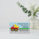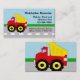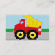 Share your contact information with other parents and kids with this cute boys or dad's calling card. Adorable and fresh primary colors are the key element in this super cute kids or boys dumptruck construction theme collection. Features a work dump truck with a red body, yellow dump bed and wheel chucks, and gray exhaust and bumpers. The background contains a gray asphalt road with white markings, green for grass and blue for a sky. A great theme for a boys birthday party, builder and building trades or children's big machine theme room decor. All Designs Copyright © 2012 www.CustomInvitesOnline.com