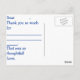 This thank you card is colorful and fun. On the front there is a dump truck full of thank yous. On the back, a VERY easy thank you note. Just fill in the blanks and send. Postcards are much more inexpensive to send than a card. You can personalize the name, and the sentiment on the front.
