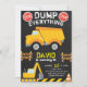 Dump Yellow Truck Construction Birthday Chalkboard Invitation