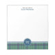 Personalized note pad with a plaid border and monogram. Features the ancient tartan for Clan Duncan. Light green, blue and red Scottish plaid pattern from 1880, with black and white accents.