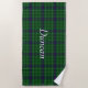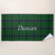 Stylish beach towel done in the classic blue and green Scottish clan Duncan tartan plaid pattern. Personalize the large white text, in the middle, to suit your needs.
