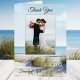 Wedding Thank You note card featuring your own wedding picture framed by dunes overlooking a beach and the ocean. There is also space inside to add more photos.