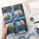 A modern, blue and green Sutherland tartan forms the background for a beautiful photo of the clan's seat, Dunrobin Castle, to create an unforgettable, vintage look wrapping paper.