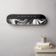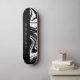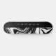 Skateboard has a unique design with solid block of black on one side and a swirl pattern in black and white on the other side. Personalize with custom name or text for a great gift idea for those that love skateboarding. The name is in a vertical orientation in gray lettering.