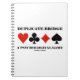 No need to be an avid duplicate bridge player to enjoy this notebook featuring the four card suits along with the bridge truism saying "Duplicate Bridge A Psychological Game". Duplicate bridge really is a game of psychology, involving logic, memory, and a dose of understanding how people play and why they make decisions the way they do. Make others do a double-take at the bridge table the next time you play with this memorable bridge psyche saying notebook!