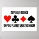 Duplicate bridge players will enjoy this poster featuring the four card suits along with the following bridge saying that will definitely be a conversation point at the bridge table and beyond: "Duplicate Bridge Keeping Players Smarter Longer".
