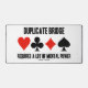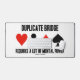 Showcase your wry duplicate bridge sense of humor with this desk mat featuring the four card suits along with the saying "Duplicate Bridge Requires A Lot Of Mental Power".