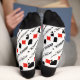 No need to be a Lifemaster to enjoy this duplicate bridge humor pair of crew socks featuring the four card suits (heart, club, diamond, spade) and the duplicate bridge truism "Duplicate Bridge Takes A Lifetime To Master". Make everyone do a double-take on exactly what this saying means the next time you play bridge wearing this pair of crew socks!