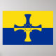 This design features the flag of County Durham, which is a ceremonial county in North East England. The county town is Durham, a cathedral city. The historic county's boundaries stretched between the rivers Tyne and Tees. The largest settlements in County Durham are Darlington, Hartlepool, Stockton-on-Tees, Durham, Billingham, Peterlee, Newton Aycliffe, Bishop Auckland, Consett, Chester-le-Street, Seaham, Stanley, Spennymoor, Crook, Shildon and Ferryhill.