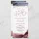 Glam faux gold glitter and geometric lines and burgundy wedding script on moody burgundy and navy blue watercolor background, Modern and chic, trendy wedding program for fall and winter wedding party.