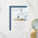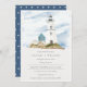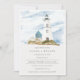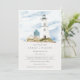 Dusky Aqua Blue Lighthouse Mountain Wedding Invite