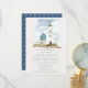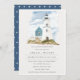 Dusky Aqua Lighthouse Mountains Engagement Invite