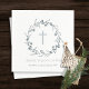 Dusky Blue Floral Laurel Wreath Monogram Baptism Napkins
