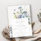 Dusky Blue Watercolor Cottage Floral Wedding Invitation