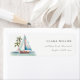 Dusky Teal Sailboat Palm Seascape Address Label