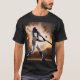 My 11 yo wore adult XL (5’7” 165#). The 8yo is small framed. She wore adult small and tied it in the back. Grandma wore adult large with long sleeve shirt underneath. Tall girl adult medium. Dark haired male adult large. Good quality dark Heather gray, Gildan brand shirt. -it was next up from basic choice and cost about $20 per shirt. Not too thick or thin. Washed and dried well, no major shrinkage. Not see-through. Can wear a bra under it fine. Screen print is just as shown and well done, front and back.